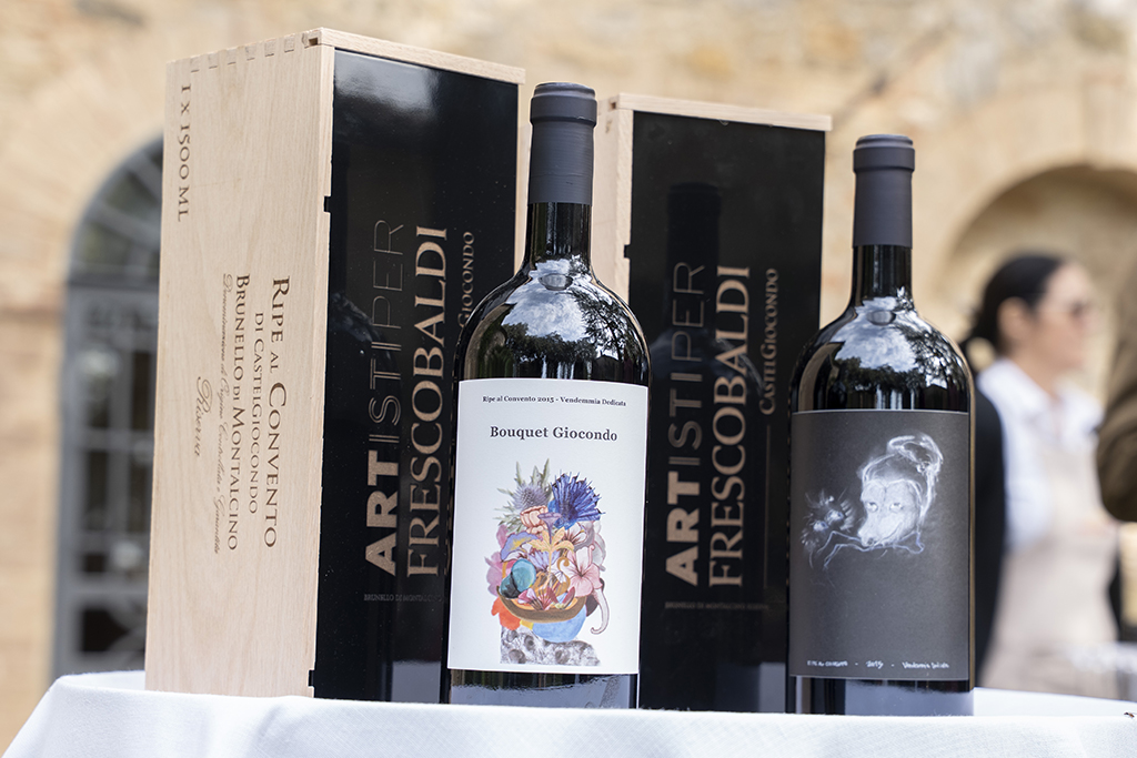 Le opere degli artisti contemporanei invitati con il progetto Artisti per Frescobaldi sono collocate in diversi spazi della Tenuta CastelGiocondo. A ciascun artista è inoltre affidata la creazione di un’etichetta d’autore per una serie limitata e numerata di bottiglie Magnum di Brunello di Montalcino, espressione concreta del dialogo tra arte contemporanea e cultura del vino.
